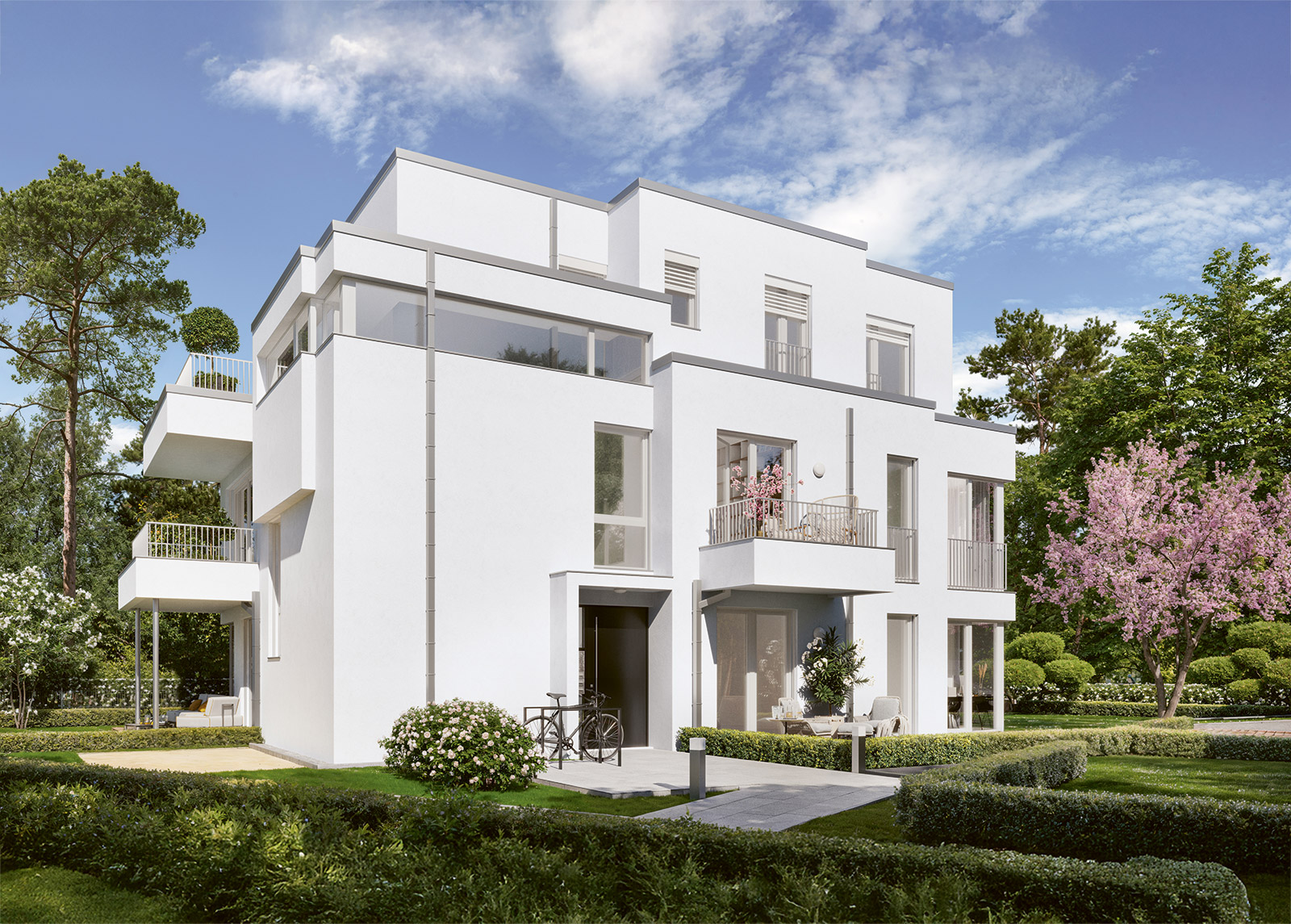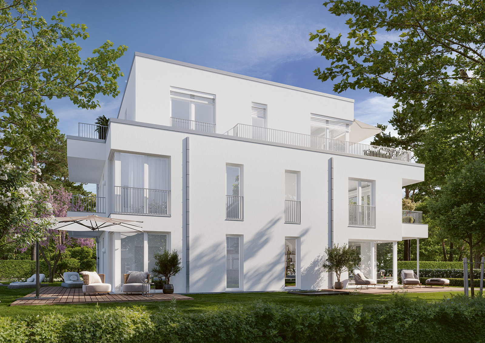 In einer eleganten weißen Villa mit nur drei Luxuswohnungen im Grünen erwartet Sie ein